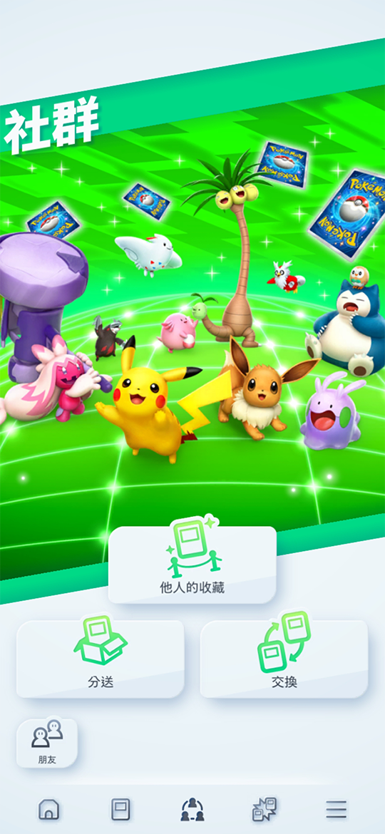 您也可以使用「交換」功能和朋友交換寶可夢卡牌。互相給對方看看卡牌包的圖鑑,交換彼此想要的卡牌吧。